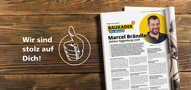 Wir gratulieren zur Nomination Unser langjähriger Mitarbeiter Marcel Brändle hatte die Ehre und wurde durch das Fachmagazin "Baukader" interviewt. Wir sind froh, dich bei uns im Team zu haben. Lesen Sie das ganze Interview – viel Spass. |