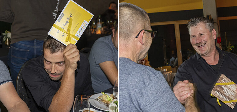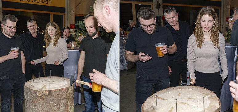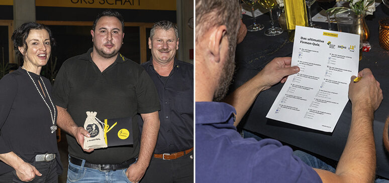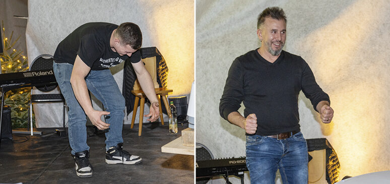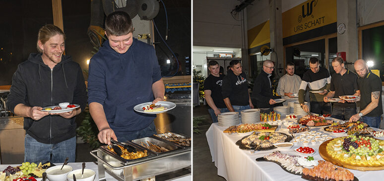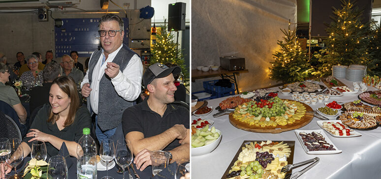 | Am letzten Freitag im November feierten wir zusammen mit den Firmen Technik Center Grueb AG sowie SBOAG unser Weihnachtsessen. Die Werkstatt wird jeweils zu einem Festplatz umgestaltet. Wir durften ein sehr feines 3-Gang-Menu von unserem Dorfmetzger Kurt Sturzenegger geniessen. Eröffnet wurde die Feier mit der traditionellen Rede von unserem Chef Urs Schatt mit diversen Verdankungen, Gratulationen sowie Jubiläums-Ehrungen. Für Unterhaltung war natürlich auch gesorgt. Unsere Lachmuskeln wurden strapaziert: der Komiker Schösu war in Hochform, aber auch das Pantomime-Ratespiel zur späten Stunde trug dazu bei. Es wurde bis spät in die Nacht gefeiert. Auch zu Gast war unser Werbeträger Domenic Schneider, der "Schwinger der Herzen". Ein spezieller Dank gilt Irma & Urs Schatt, unseren Mitarbeitenden, unseren Jubilaren (Mano Bürgi, Patrik Bürgi, Christian Holenstein, Raphael Schwager, Stefan Engelbrecht, Hanspeter Schrepfer, Adrian Sturzenegger), dem Musik-Trio Echo vom Hallüü, dem Komiker Schösu Hafner, dem Partyservice Kurt Sturzenegger und der Fotografin Foto Prisma Oertle. Wir freuen uns bereits auf nächstes Jahr :) |